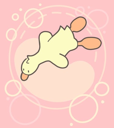 A collection of duck graphics, using a soft color palette to depict ducks at rest and asleep.
