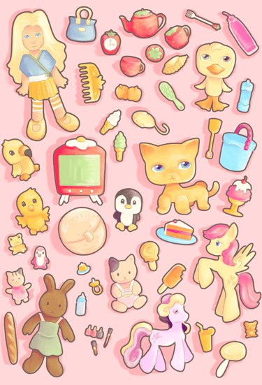 The main spreads of the project, "Play" and "Coping" feature various objects from both childhood and adulthood.